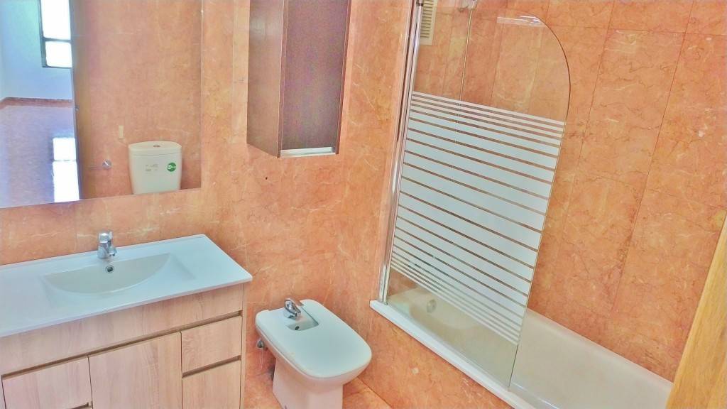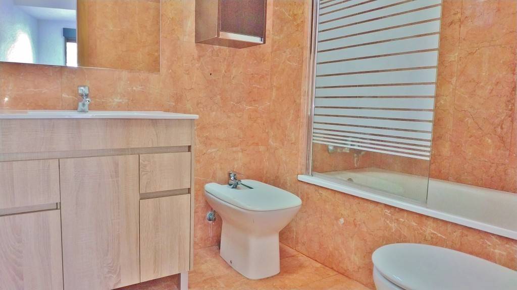 Espaciosa habitación tipo SUITE, en la que encontramos un amplio BAÑO COMPLETO con bañera y mampara de cristal.
