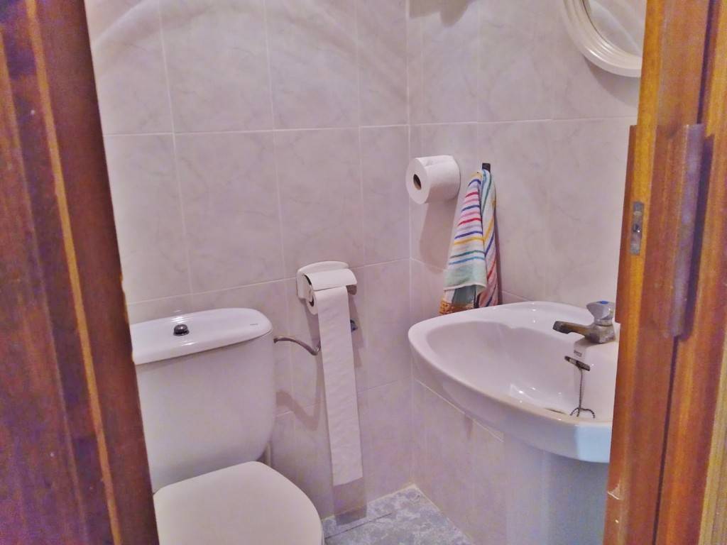 Habitación individual, ventana a la calle, otra habitación individual, ventana a pequeño deslunado, baño completo (con bañera y ventana al deslunado).