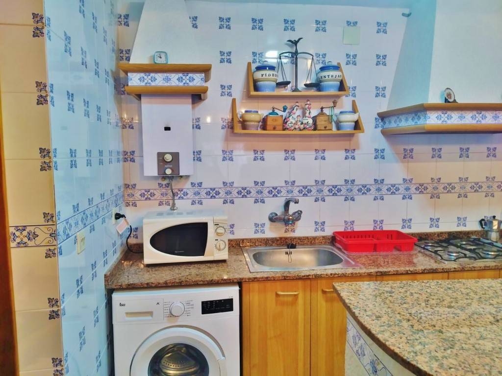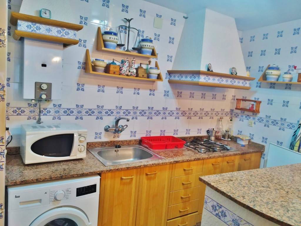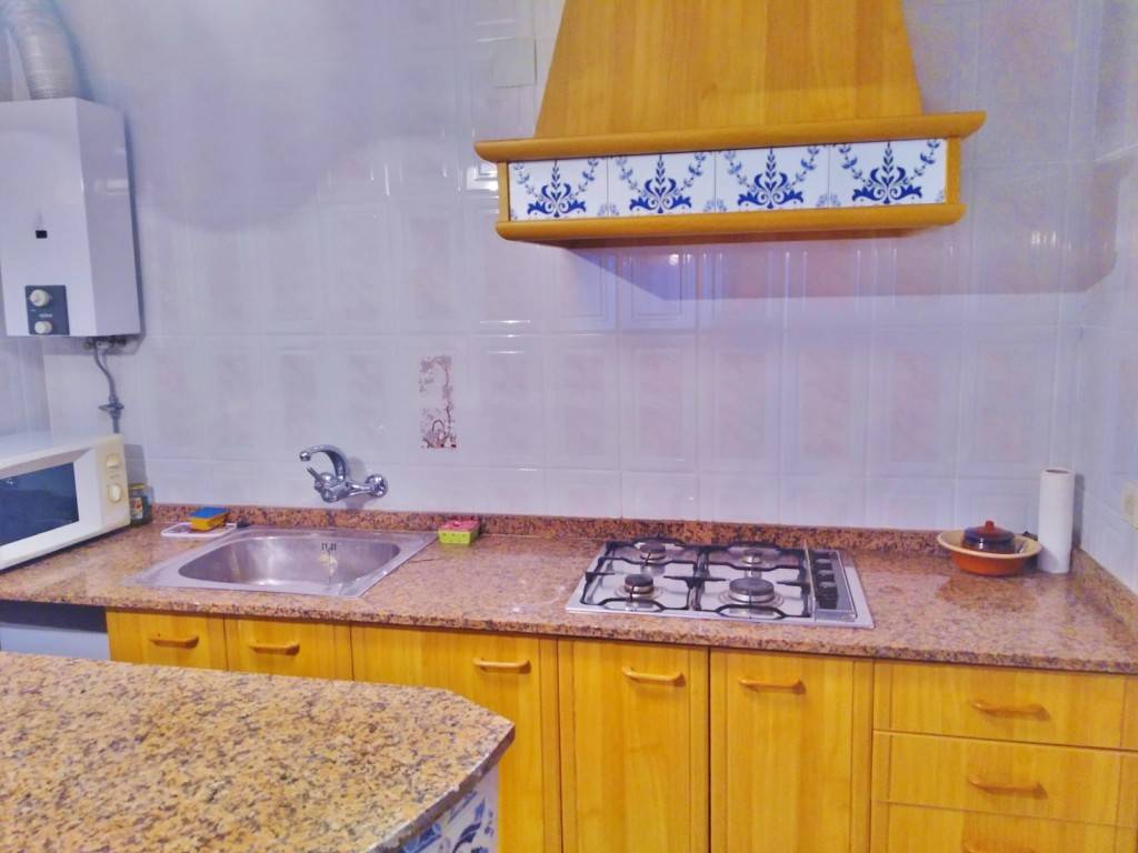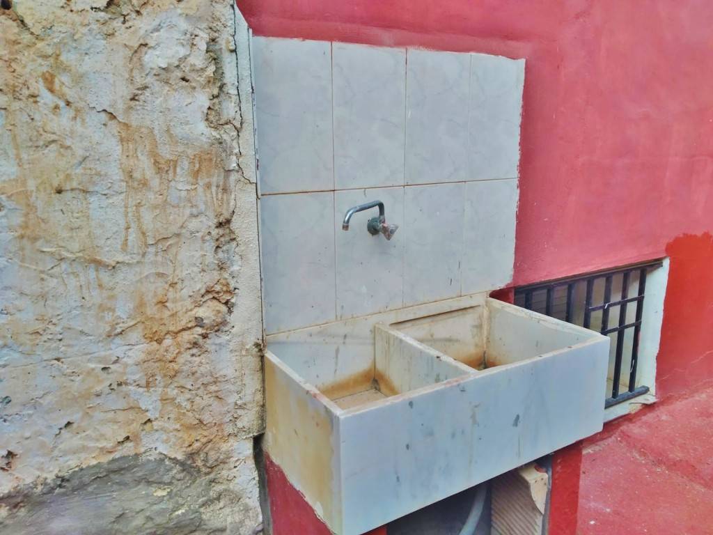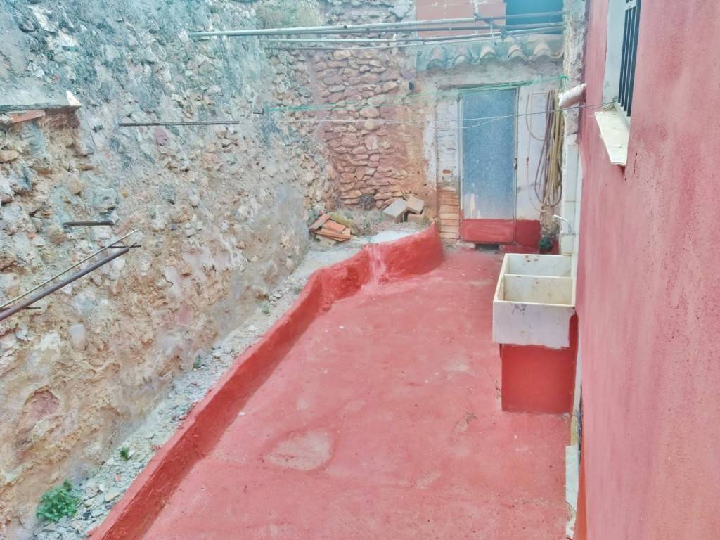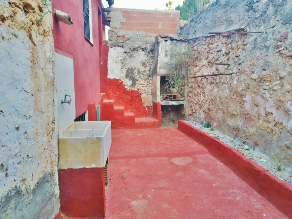 PATIO INTERIOR: Acceso por la segunda planta (debido al desnivel de la montaña en la parte trasera de la casa) al patio interior de unos 12m², con un PAELLERO y PILA DOBLE DE LAVADO.