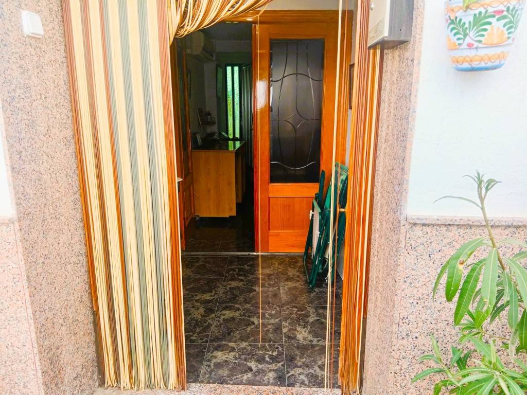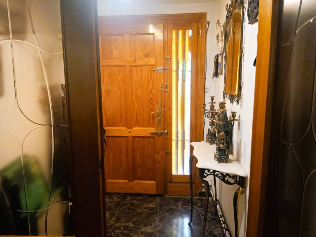 Entrada desde la calle con puerta maciza de roble para entrar y puerta cristalera en recibidor