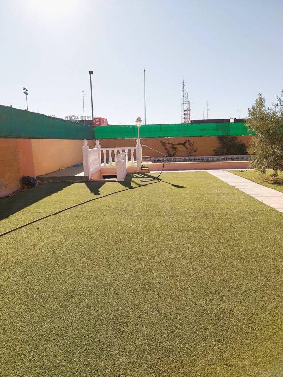 En el recinto exterior JARDÍN con pasillo solado y césped, PISCINA MUY AMPLIA de 8.5m X 5.20m, inmensa TERRAZA SOLARIUM. TRASTERO.